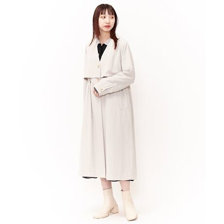 ◆季節の変わりに大活躍 ◆春先に丁度良いノーカラーのスプリングコートです。覆い布やV開きがこなれ感を演出!またウエストには丸ゴムが通っているので しぼって表情を変えられます。きれい見えする生地を使用しているので オフィススタイルにもカジュアルにも使える便利な1枚です。de base model:H165※画像の商品はサンプルとなります。※釦は代用です。※そのほか 実際の商品と色味、仕様、加工、サイズ、素材等が若干異なる場合がございます。《お取り扱いについて》・着用またはお取り扱いの際は、アテンションタグや洗濯ネームを必ずご確認ください。《注意事項》※商品の色や質感をできるだけ忠実に再現するよう心がけていますが、撮影場所やお使いのモニター環境により、実物と若干異なる場合がございます。予めご了承ください。※写真を許可無くコピー・転用することは固くお断りします。