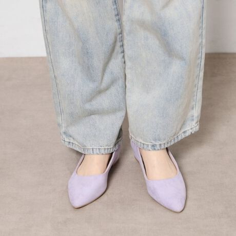●ペタンコ過ぎない安心感のあるローヒールタイプ。ヒール部分のメタルパーツが上品さをプラス