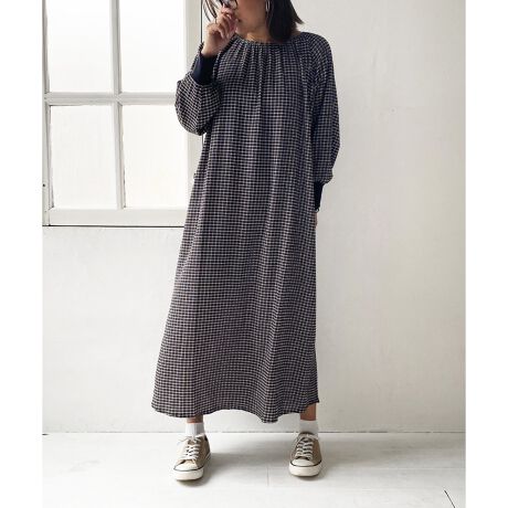 袖リブ使いのロングワンピース。