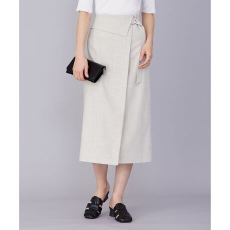 ■デザインDカンベルト付きのラップデザインが洒落見えするロングタイトスカート。裾に向かって広がりすぎないシルエットが特徴です。トップスをインしてすっきりとした着こなしがおすすめです。