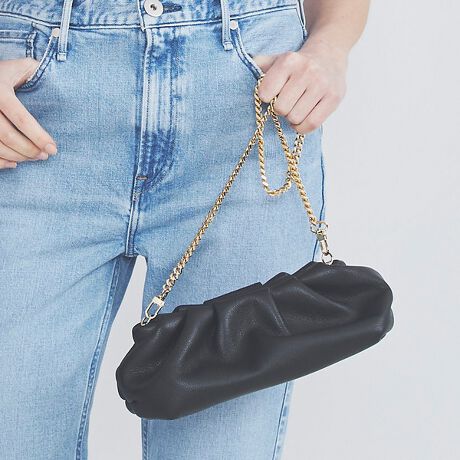 スタイルを選ばず持てる、モダンなクラッチバッグ。