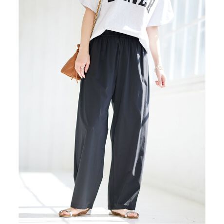 ストレッチが効いた履き心地のよいワイドパンツ。