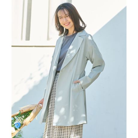 キレイ目もカジュアルもこれ一枚!美シルエットが魅力のスプリングコートPOINT●ストレッチ性があり動きやすい●程よい着丈で合わせやすく、抜け感のあるスタイリングに●ウエストベルトは前後どちらで結んでもかわいい■デザイン程よくゆったりとしたシルエットで抜け感のあるスプリングコートです。長すぎず、短すぎない程よい着丈が今年らしく、キレイめスタイルにも、パーカーやジーンズを合わせた大人のカジュアルスタイルにも合わせやすいデザインです。大人っぽいシンプルなデザインと美シルエットも魅力。ウエストベルトは前で結んでも後ろで結んでもOKです。■素材ストレッチ素材なので着心地の良いアウターです。