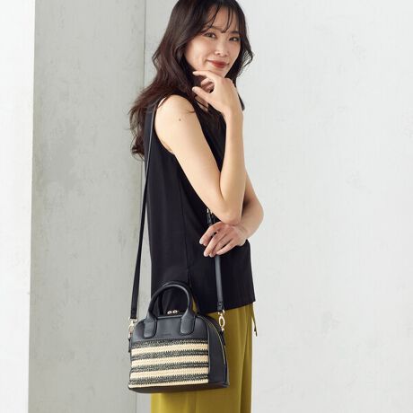 ・これからのシーズンのお出かけにピッタリなサイズの雑材ミニボストン。