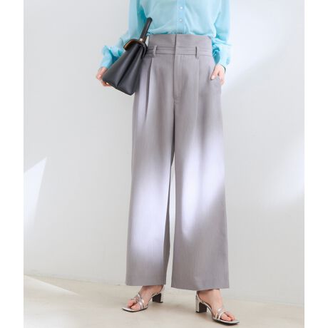 【洗える】ダブルウエストハイライズワイドパンツ