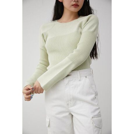 GATHER SLEEVE RIB KNIT