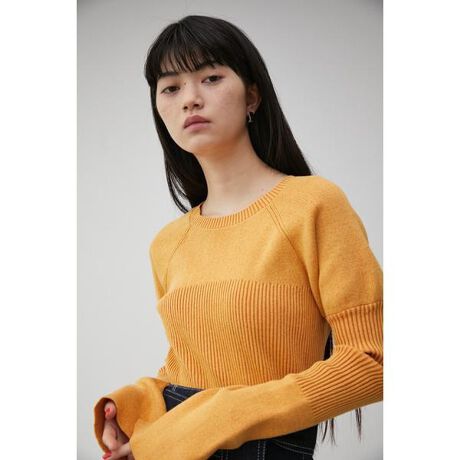 GATHER SLEEVE RIB KNIT
