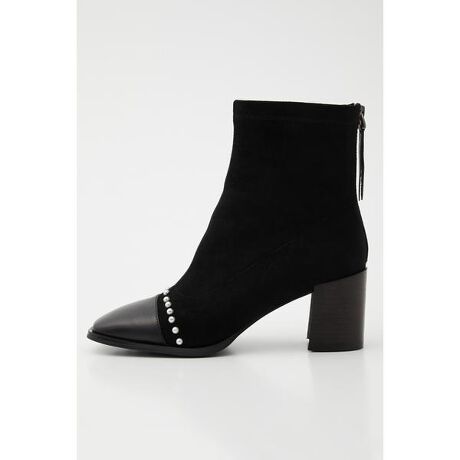 感度高めなパール使いがSTACCATOらしさ光る、デザインきいた異素材のスエードタッチ×スムースコンビに、着脱簡単なバックジップ仕様に安定感ある太めのスタッグドヒールも◎スタイリングに困らないジャストなミドル丈もポイント高い、秋冬におすすめのブーツ。※衝突・衝撃等によるパール取れ等、お取り扱いにご注意ください。