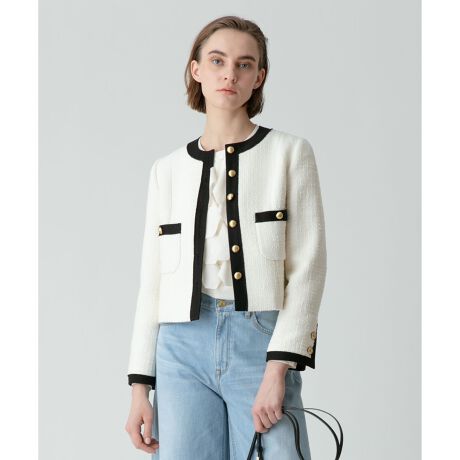 イタリアのインポートツィードを使用した、今シーズン注目のショート丈ジャケット。トリミングのバランスや釦使いでクラシックになりすぎないようモダンな印象に仕上げました。