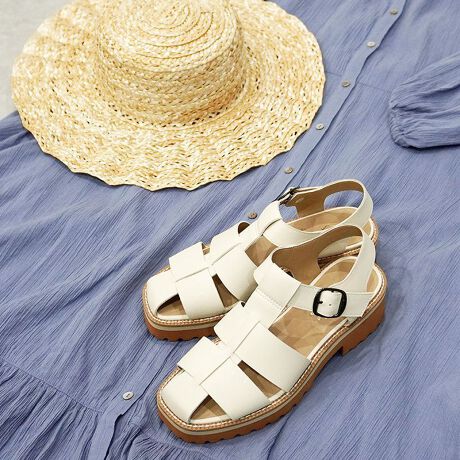 ソールにあしらったラインがスポーティーな雰囲気のグルカサンダル。軽量発泡ソールで軽やかな履き心地です。トレンドのグルカサンダルはつま先が露出し過ぎないのが特徴。夏場でも肌をあまり出したくない方にもおススメです。