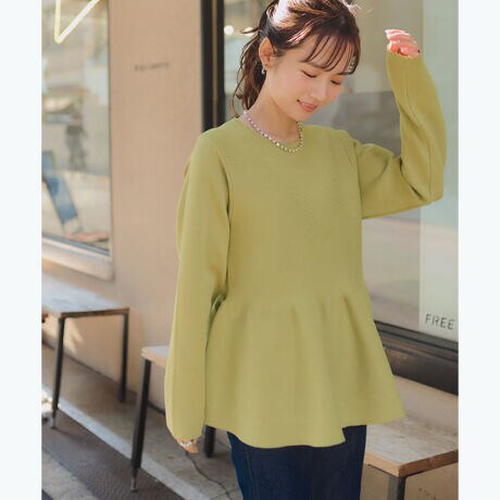 ・バックパールデザインがアクセントをプラス。・ペプラムデザインでハイウエスト効果も。・程よく肉感のある素材を使用。・クルーネックで首元すっきり見え。[型番:ABXP3543]