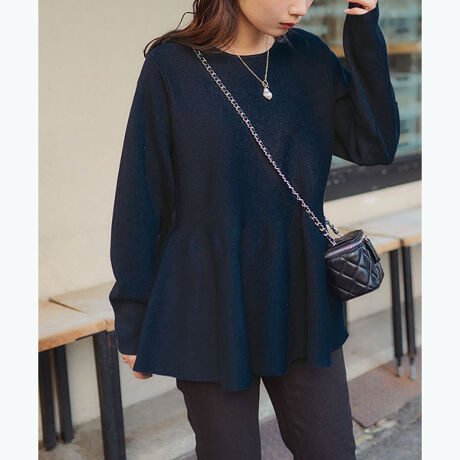 ・バックパールデザインがアクセントをプラス。・ペプラムデザインでハイウエスト効果も。・程よく肉感のある素材を使用。・クルーネックで首元すっきり見え。[型番:ABXP3543]
