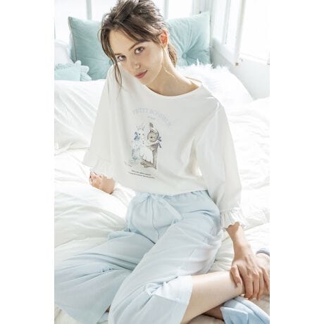 ルームウェア コットンスムースオンプリントラビット セットアップ