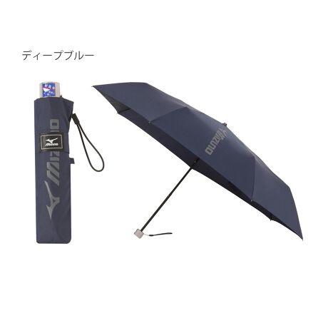 ブランドロゴを大きく掲げた、スポーティな印象の折り畳み傘です。