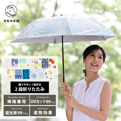 裏面コーティング付きで、UVカット率&遮光率99%以上、遮熱効果あり、はっ水効果付き。雨の日もお使いいただける晴雨兼用日傘です。