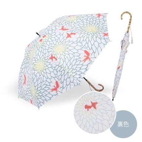 和柄のデザインだけでなく、どの柄にも日本の伝統色を一色使用しています。手元は寒竹を使用。綿が含まれた風合いのある生地を使用しているので、上品な和の趣が感じられます。