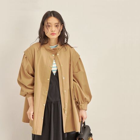 スタンドカラーに、綺麗に広がるテントラインが特徴的なスプリングコート。