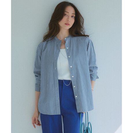 すっきりとしたラインのバンドカラーシャツ。肩幅には少しゆとりを持たせているので着心地も抜群です。一枚でさらっと着るだけでオシャレな雰囲気を引き出してくれる、カジュアルにもシックにも着まわせる万能アイテムです。シンプルにデニムと合わせても、タックパンツなどと合わせても◎。カラーは、清潔感溢れるホワイト(#001)、春らしいイエロー(#040)、華やかさが際立つスカーレット×ホワイトストライプ(#120)、マリンの雰囲気漂うブルー×ホワイトストライプ(#170)、オンオフ使えるスカイブルー×ホワイトストライプ(#172)、爽やかなホワイト×マリンブルーストライプ(#201)、落ち着いた印象のアイボリー×ブラック(#202)、こなれ感のあるスカイブルー×スカーレットストライプ(#272)の8色展開です。