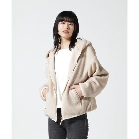 リサイクルポリエステル糸100%使用したフードタイプのボアブルゾン。アウトドアメーカーが使うのと同じ軽量で高い保温性を持つ高密度な機能素材を、アウターとしてもインナーとしてもよりロングシーズン着回せるようボリュームを抑え薄手に仕上げました。ポリエステルの裏地で、さらりとした着心地ながら保温性も一層アップ。オーバーサイズでカジュアル感の強いアイテムですが、華奢なシャンパンゴールドのスライダーでしっかりと女性らしさをプラスしています。