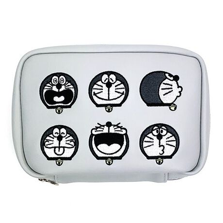 ドラえもん スクエアポーチ GY モノクロ刺繍 ドラえもん 小物入れ グレー マリモクラフト