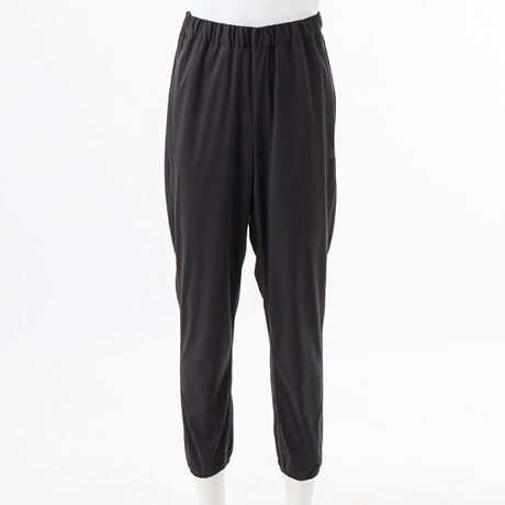 日常のコーディネートを1着で済ませたいミニマリストのニーズに、アウトドアのノウハウで答えたデイリーウエア「テック ラウンジ コレクション」のパンツ。マイクロファイバータオルをイメージして開発したポリエステル素材は速乾性に優れ、表面は微起毛で肌触りやわらか。ストレッチ性がありながらハリのある素材でシワになりにくいのも魅力です。さらに、コーヒーかすが原料のエスカフェプリントを肌面に施し、においの発生を抑制します。ロゴは主張を抑えたエンボス加工を採用。ゆとりのあるシルエットでリラックス感を重視しています。裾はゴムシャーリングで適度なフィット感。縫製箇所には超音波溶着を採用し肌あたりを考慮。UVプロテクト(UPF50+、紫外線カット率95%以上)機能付き。旅先で洗濯ネットとしても活用できる、メッシュのスタッフサック付き。夏のデイリーユースやトラベルに快適な1着です。