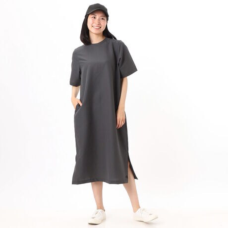 清涼感のあるシアサッカー素材を使用したワンピース。軽量なポリエステル捲縮糸を採用することで、生地にストレッチ性を持たせています。はっ水加工を施したメッシュ調の生地は通気性を持ちつつ、多少の雨にも対応。ハリがあり、シワになりにくいのも特長です。気軽に洗濯できるイージーケアも魅力。ゆったりめのシルエットで、左右に深めのスリットが入り、脚さばきも快適。左肩のスナップボタンで着脱も簡単です。UVガード(UPF30-50+、紫外線カット率90%以上)機能付き。外出時から家でのリラックスシーンまで幅広く対応する、春夏の装いに欠かせない1着です。