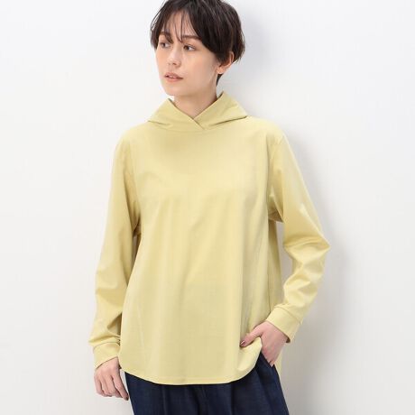 程良い身幅感のフード付きプルオーバーです。