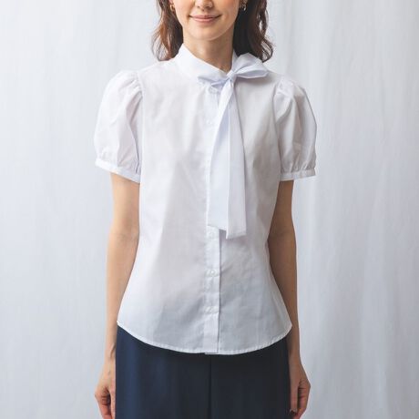 通気性もよく白が映え、白色ブラウスを購入する際は黄ばみが気になる素材もありますが、この生地素材は大丈夫だと思います。リボン部分も結ぶのではないタイプでカタチが取りやすいので朝の忙しい時も時間もかかりません。