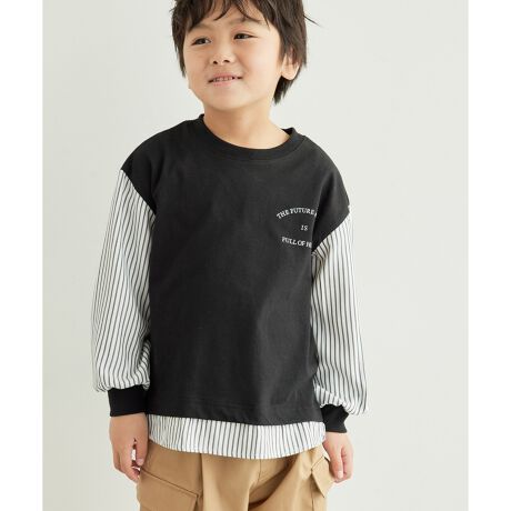 【KIDS】UNISEX袖ストライプ胸元ロゴロングTシャツ