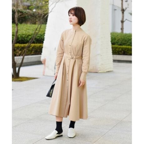 共生地のベルトでウエストマークすればフィット&フレアシルエットにも。