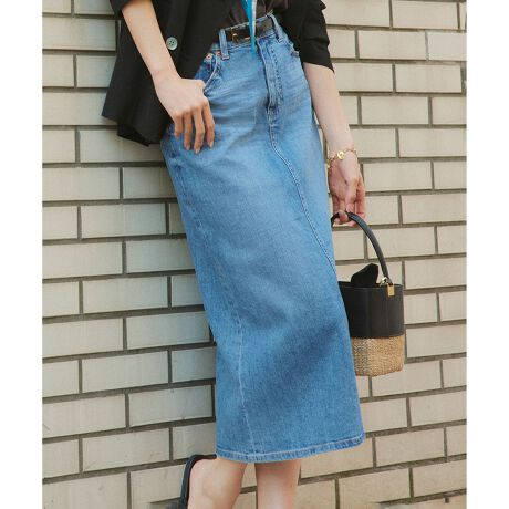 すっきりとしたAラインが美しいシルエットを実現するデニムスカート