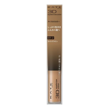 1本1本の眉毛にしっかり色付くのに、ふんわり仕上がる眉マスカラ。高密着ワックス配合。3Dアイブロウカラーと比べ、1)自眉の黒さを抑える微細パール配合で高発色を実現。2)粉体量の多い処方を採用し、ふんわり感を強化。3)眉毛をしっかりキャッチしてとかしやすい大きめ新形状ブラシで自然な仕上がりアップ。また、汗・皮脂・こすれに強いのに、お湯で簡単にオフ。髪色に合わせて選べる新6色。