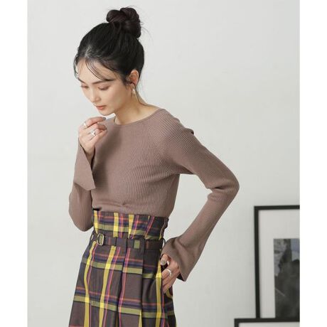 緩やかに広がるフレアスリーブが大人フェミニンなリブニット。横広のボートネックがデコルテ美人を演出し、女性らしさを加速。ラグラン切り替えのデザインが程よい抜け感をプラスしてくれるのも魅力的。きれいめな印象の中にこなれたディテールを宿した今っぽいバランスが、シンプルながらも様になる1枚です。
