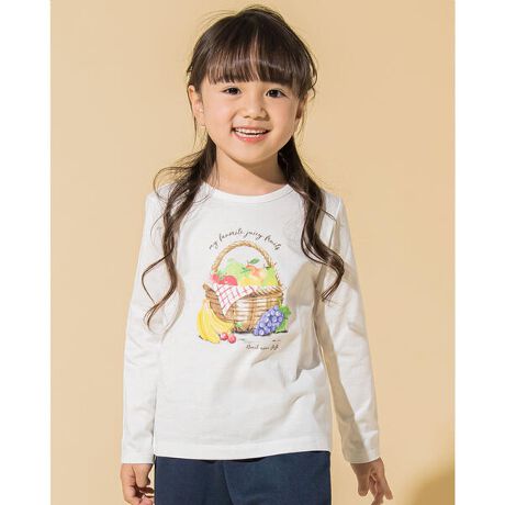 フレッシュなフルーツがいっぱい入ったバスケットプリントの女の子用長袖Tシャツ。