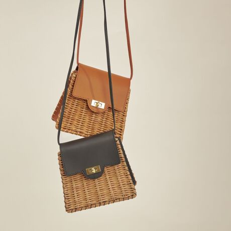 The Bagmati: ラタン コンビ ハンドル バッグ(品番:310-00-1042)
