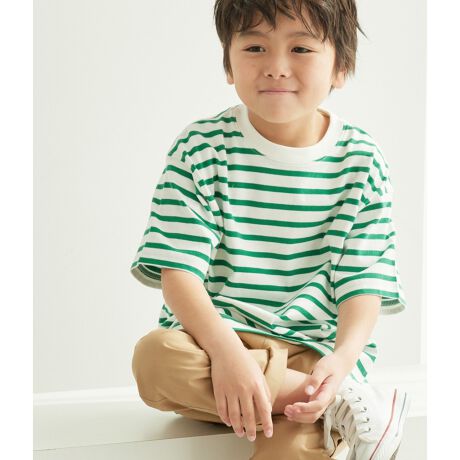 【BOYS】リンクコーデ/ボーダーオーバーサイズTシャツ