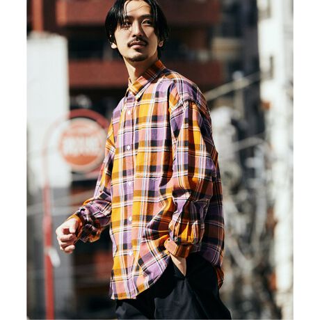 インドマドラスチェック ボタンダウン ワイドシャツ