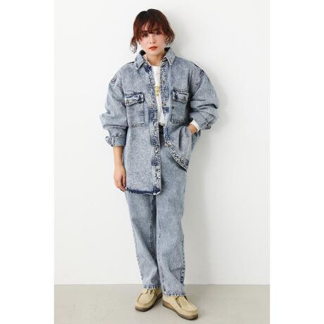 春らしいカラー展開のWASHカラーデニムパンツ。ボーイズライクな形で、ゆとりがあるのもポイント。ウエストもゴム仕様で楽ちんです。同シリーズでシャツジャケット(420GSR30-094V)もあるので、セットアップで合わせるスタイリングもおすすめです。