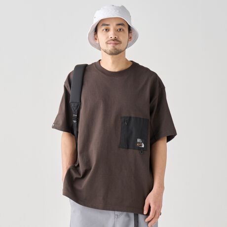 アウトドアシーンで便利な胸元のファスナー付きポケットやループを配したシンプルなデザインです。