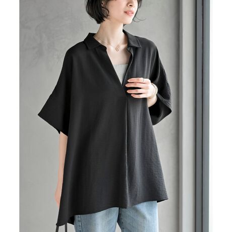 しなやかな落ち感が大人の雰囲気を醸し出すシャツブラウス。