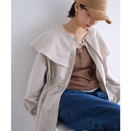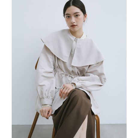 ふんわりとしたケープ風の大きな襟が特徴的な
