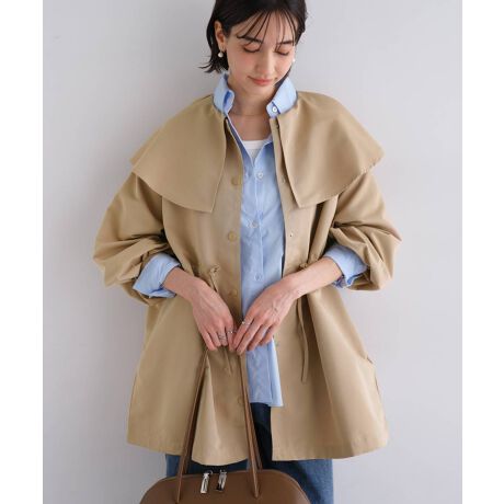 ふんわりとしたケープ風の大きな襟が特徴的な