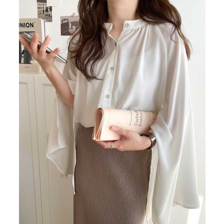 動く度揺れるフレアスリーブが印象的なブラウス。