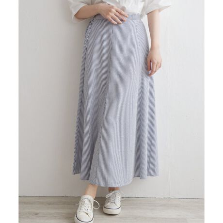 ポコポコした表面感のあるサッカー生地のロングスカート。