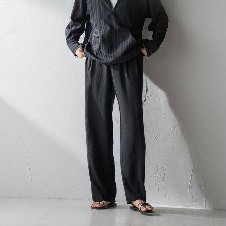 繊細なとろみ素材で、楽にきれいを叶える、タックワイドパンツ。