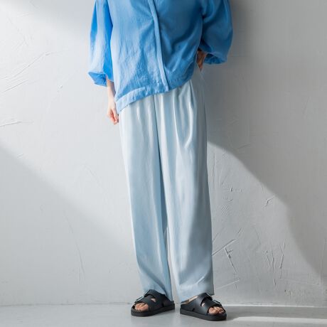 繊細なとろみ素材で、楽にきれいを叶える、タックワイドパンツ。