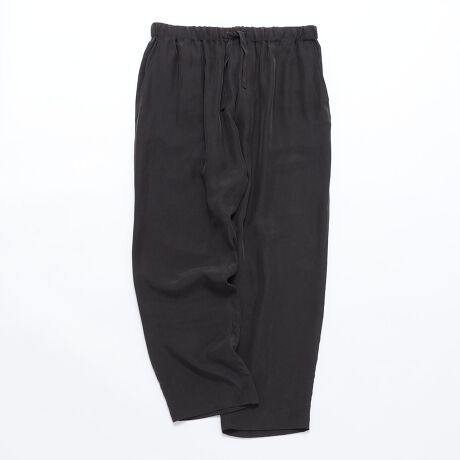 撚糸のかかっていないシルク100%のタテ糸とヨコ糸を交互に織った、プレーンな平織り組織を使用したイージーパンツ。