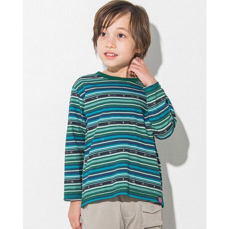ウエスタンのイメージを彷彿とさせるカラーリングのマルチボーダーが特徴のリバーシブル長袖Tシャツ。