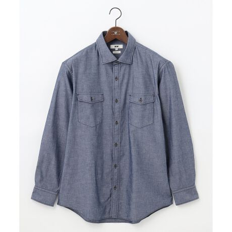 ■素材アブードオリジナルのJOE COTTONとムラ糸を使用した、ヴィンテージ感のあるシャンブレー調のダンガリー生地を使用したシャツです。製品洗いをかけ、風合いの良さも、魅力的なカジュアルシャツはジャケットやニットのインナーに最適なアイテム。