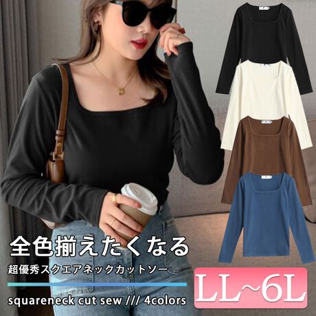 スクエアネックのロングスリーブカットソーです。そのまま着ても、インナーに着ても、シンプルで何にでも合わせられ、オールシーズン着用可能万能トップスです。今回は、色違い買い必須の着回しに大活躍する4色を入荷しました☆着心地良く、伸縮性がしっかりあるので程よいフィット感できれい目スタイルにも対応できます☆